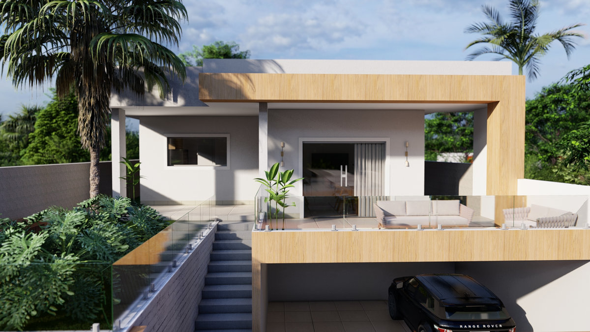 Além disso, para valorizar ainda mais a vista e maximizar o aproveitamento da área, projetamos um terraço descoberto sobre a garagem, criando um espaço agradável para lazer e contemplação.